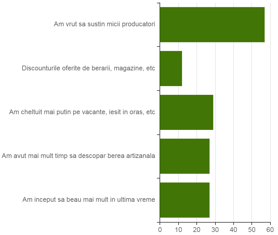 Din cele 91 de persoane care au spus că au cumpărat mai multă bere în ultimele 6 luni, motivele date au fost următoarele: