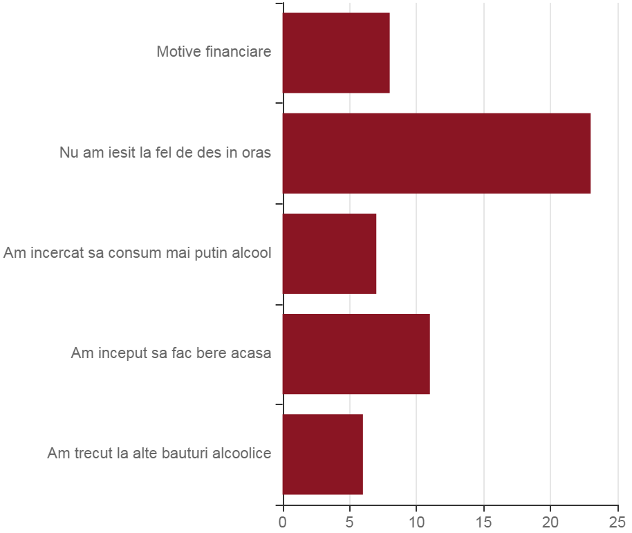 Preferințele consumatorilor s-au schimbat și ele în ultimele 6 luni, conform unui chestionar separat cu 134 de respondenți. De exemplu, într-un sondaj publicat în luna mai, 54.1% dintre respondenți au spus că vor ieși la băut mai puțin în săptămânile de după 16 mai, în timp ce 39% au spus că vor ieși la fel de frecvent.