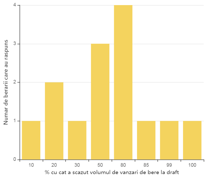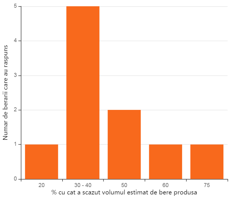 Pentru început, am întrebat producătorii de bere cât estimează că producția lor de bere a scăzut anul acesta, comparativ cu 2019.